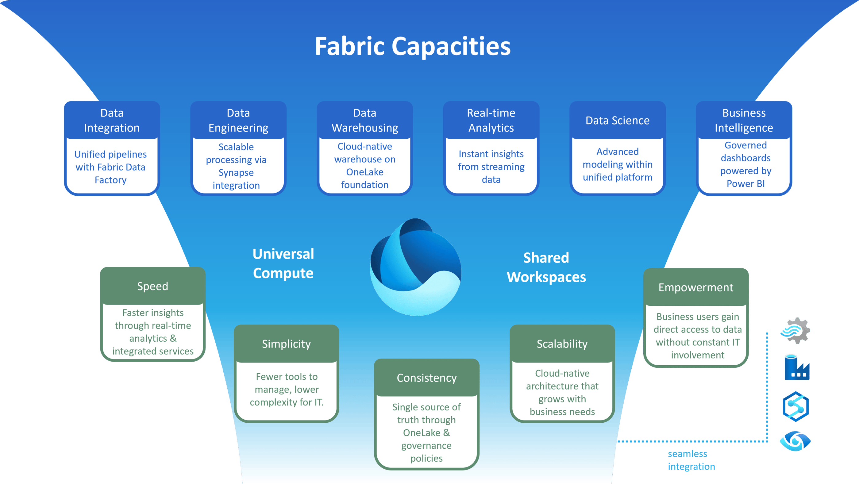 The vision behind Fabric is to empower both technical experts and business users. Data engineers, analysts, and executives can all work with the same data foundation, which improves collaboration and reduces complexity.
