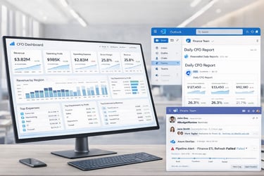 Our CFO Reporting Pack gives finance teams a standardized reporting environment built for transparency and decision-making. We combine key financial KPIs, management dashboards, and structured data models into one scalable solution that reduces manual reporting effort and improves consistency across the business. Instead of building reports from scratch, you get a proven framework that can be connected to your existing systems and rolled out quickly.