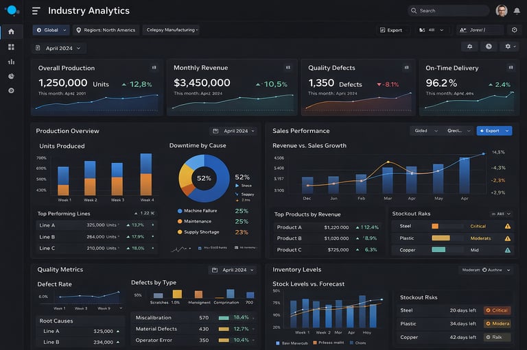 Our Industry Analytics Apps are productized reporting solutions designed for specific business models and sectors. Instead of starting with a blank page, you receive a structured analytics foundation with relevant KPIs, dashboards, and data logic already defined. This accelerates implementation, reduces project risk, and gives teams access to insights that reflect real operational needs from day one.